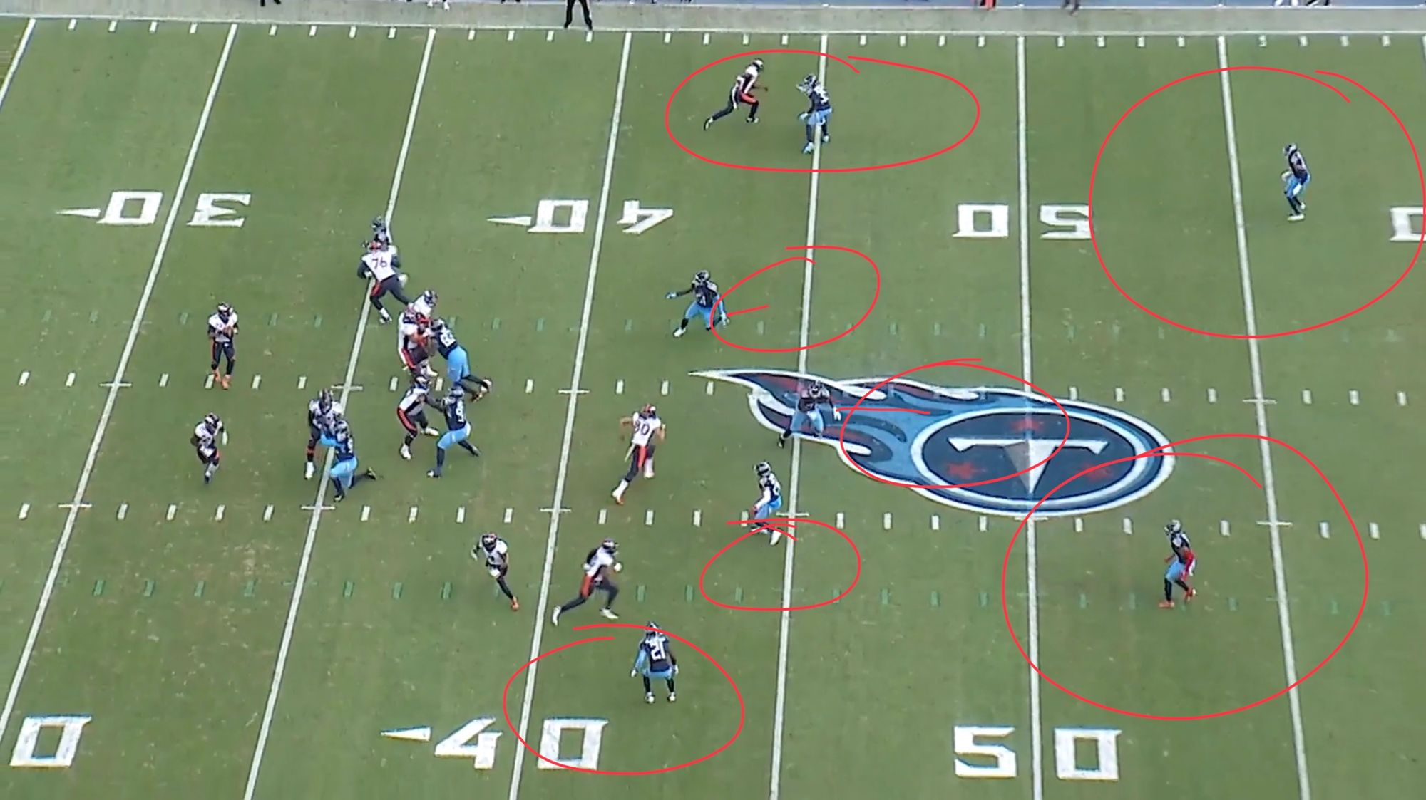 Cover 2 Invert: Tampa 2 Invert creates a twist in the defensive strategy by reversing the roles of the cornerbacks and safeties. In this arrangement, safeties ascend to cover the flat zones, while cornerbacks descend to cover the deep halves. At times, only one half of the defense adopts this inversion, while the other half retains its original formation. The zone defenders are all visual on the quarterback as well.