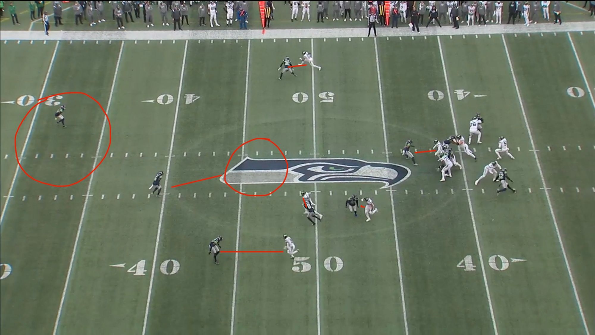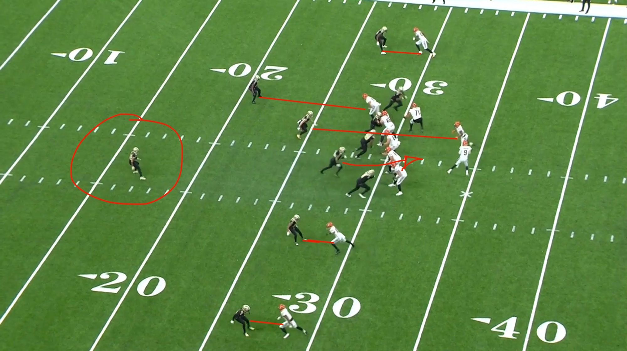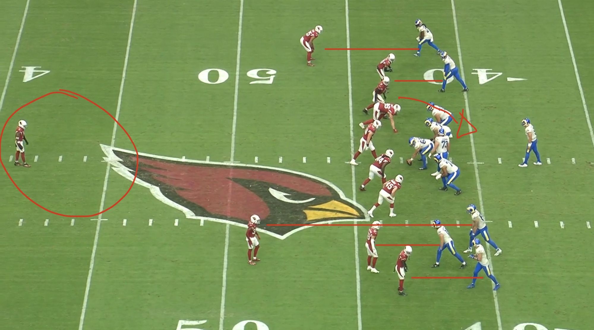 The "rover/lurk/robber" variation is when a safety drops down to play the hole location. Traditionally, rover or robber means the safety dropping down is coming away from the passing strength and lurk means he is dropping down to the side of the passing strength (will cover passing strength in future blog). This player typically is playing visual on the quarterback and providing body presence for in breaking routes. Sometimes the Rover/Lurk safety will look to double team the offensives best wideout e.g. Justin Jefferson. Similarly to Cover 1 Hole, cornerbacks are taught to play with outside leverage as they know they have help from the rover on in-breakers. If a wideout is in a plussed split they can amend their leverage accordingly.