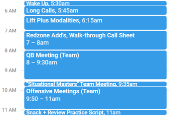 Play calls on the drive in (via voice memo): 5:45 am is a broken record for me Wednesday, Thursday and Friday. A detailed explanation of how I leverage voice recordings to gain mental reps is on the Wednesday blog.